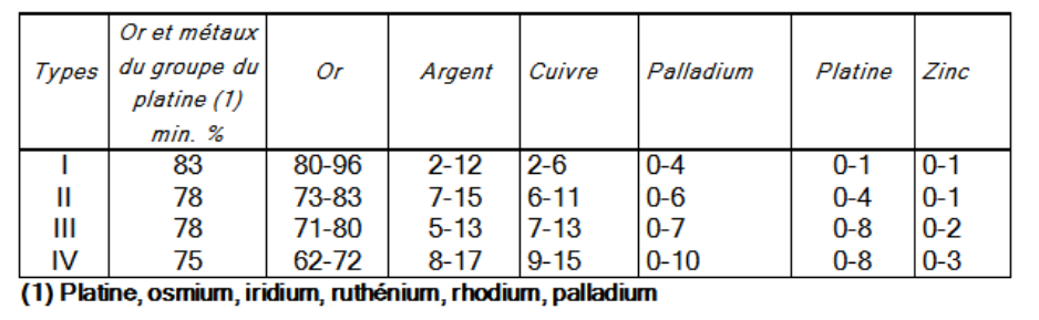 Composition des Alliages Précieux