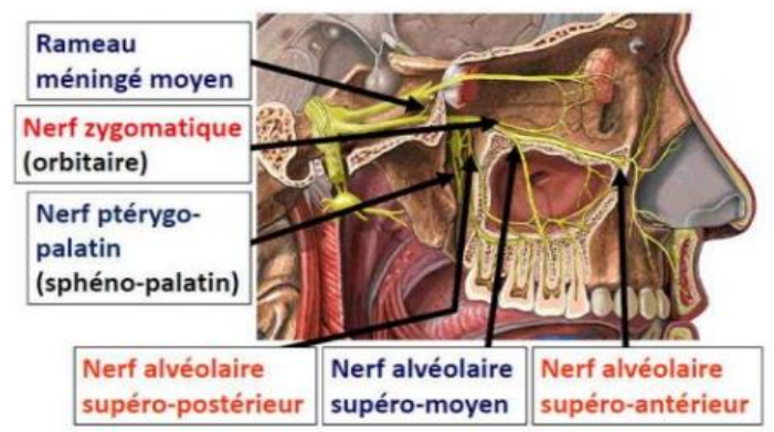 - Nerf maxillaire (V2) : Exclusivement sensitif.