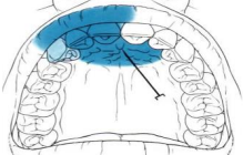 - L’aiguille est enfoncée au niveau de la papille rétro-incisive (une demi-carpule suffit).