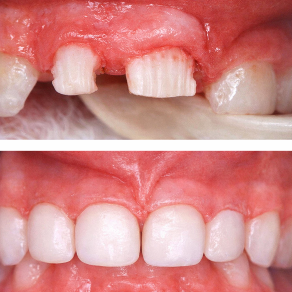 - Dents permanentes jeunes : Fin de la croissance (18 ans pour les femmes, 25 ans pour les hommes), puis remplacement par une couronne définitive en céramique