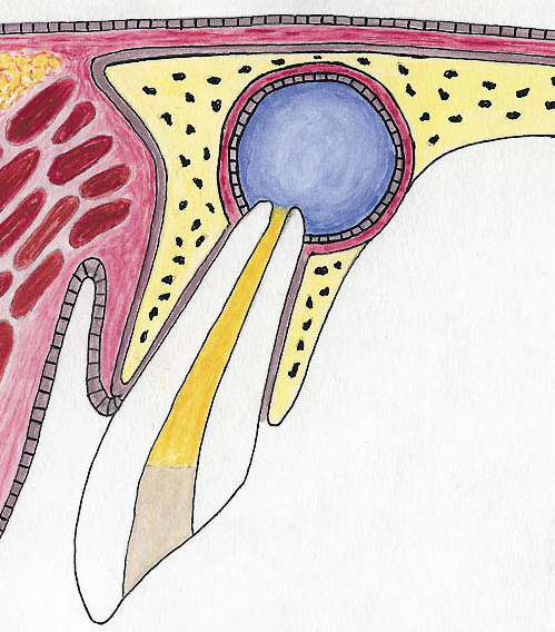 Kyste dentigère : Également appelé kyste folliculaire, il entoure la couronne d’une dent incluse et s’attache au collet de celle-ci.