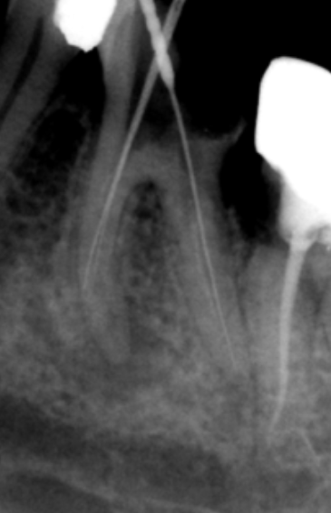 Résultat : ovalisation du foramen en forme de “sablier”, rendant l’étanchéité de l’obturation très difficile et prédisposant à un dépassement du matériau d’obturation.