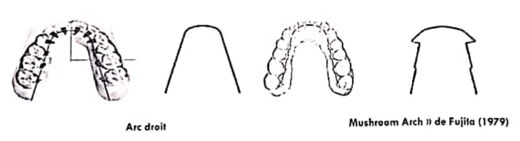 Depuis l’arc en forme de champignon « mushroom arch » décrit par FUJITA en 1979 et présentant un ins-et entre la canine et la prémolaire, les nouvelles techniques ont progressivement évolué vers le concept d’arc droit. La fabrication des arcs est assurée par un robot. Par l’intermédiaire du logiciel de fabrication des attaches, le robot connaît exactement la position des gorges sur le set-up. Il a besoin de connaître le plan horizontal, la position antéropostérieure de chaque slot et sa position dans le premier ordre par rapport au slot qui le précède. Le robot est capable de plier les fils en Copper-NITI ®, en acier et en TMA.
