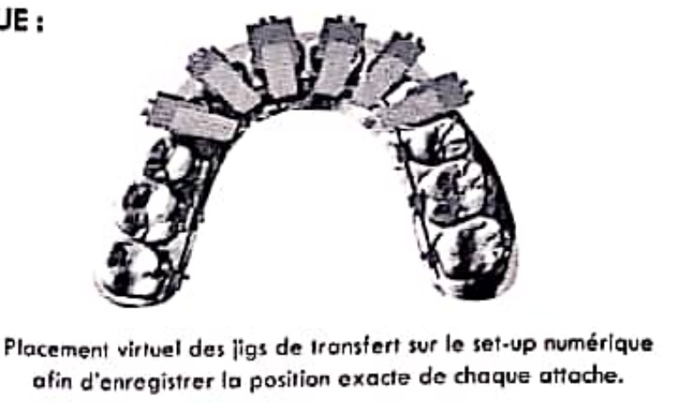 Ce système permet de bloquer certains secteurs pour lesquels nous ne souhaitons pas modifier l’occlusion. Les attaches peuvent être conçues par ordinateur : conception et de fabrication assistées par ordinateur (CFAO).