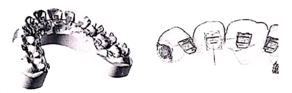 L’évolution suivante a consisté à se passer de ce patin de colle en contournant le problème des plures d’arc très compliquées sur les faces linguales. Pour ce faire, en 1999, DIRK WIECHMANN mit au point une technique utilisant un robot pour fabriquer des arcs sur mesure. Grâce à cet apport, il proposa des attaches beaucoup plus près des dents, donc plus confortables et plus résistantes au décollement.