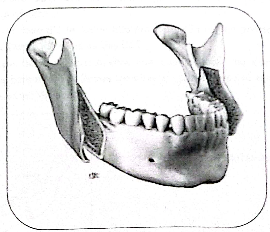 Ce type d’ostéotomie est en fait une résection interruptrice. Elle était très utilisée autrefois lorsqu’on abordait la correction des prognathismes mandibulaires.