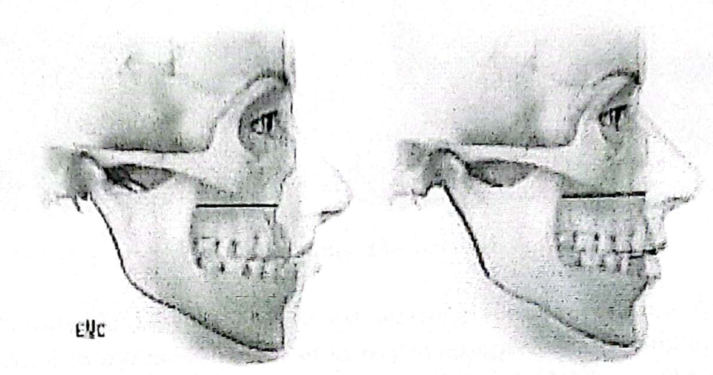 - L’arcade mandibulaire libérée est amenée dans sa nouvelle position par l’intermédiaire de la gouttière occlusale prévue.