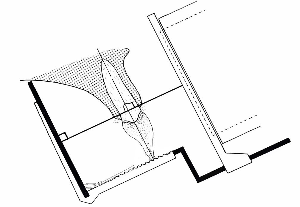 Quel que soit la méthode utilisée, il est impératif d’inclure tout l’organe dentaire dans le champ d’action des rayons X. Concernant la couronne clinique, il n’y a aucune difficulté pour la filmer, mais pour l’apex des dents, il faut inclure l’axe reliant l’aile du nez à l’orifice de l’oreille dans la zone d’irradiation.