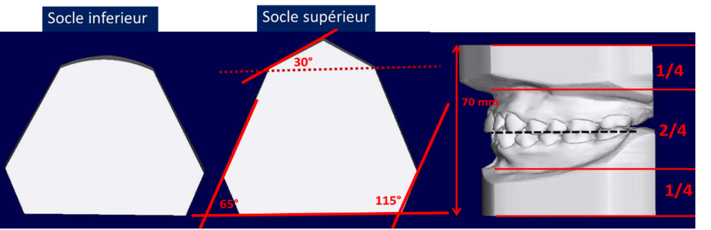 | Coulée | Utilisation de plâtre orthodontique extra dur (classe 3) pour les arcades et les socles. |