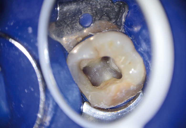 Avant la cavité d’accès : idéalement, posez la digue avant d’ouvrir la dent