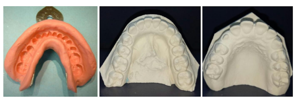 L’empreinte permet de créer une réplique parfaite des structures maxillaires et mandibulaires et de leur relief. En coulant dans l’empreinte ainsi obtenue, du plâtre on obtient une réplique fidèle et précise de notre arcade dentaire, c’est ce qu’on appelle le modèle d’étude ou modèle de travail.
