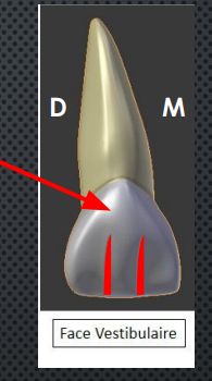 - Le bord vestibulaire est légèrement convexe et présente deux petites dépressions correspondant aux deux sillons de la face vestibulaire.
