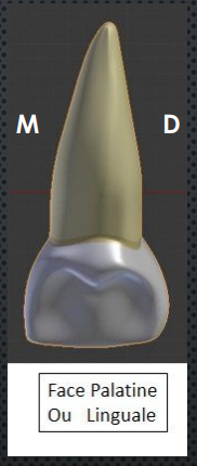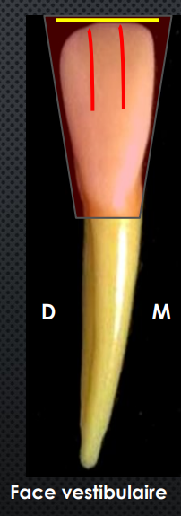 - La face mésiale est sans reliefs, présentant un méplat cervical et une convexité près du bord libre.