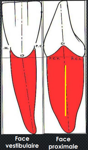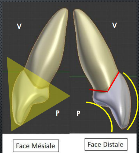 - La hauteur de la face mésiale est plus importante que celle de la face distale, mais la face distale est plus convexe.