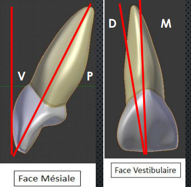 - Verticale dans le sens vestibulo-lingual et un peu inclinée dans le sens distal.