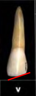 - Le bord cervical est en demi-cercle, comme pour les incisives supérieures.