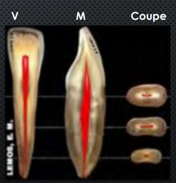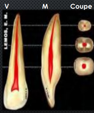 - Le canal radiculaire est aplati dans le sens mésio-distal.