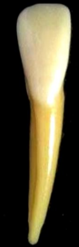 - Conique, plus longue que celle de l’incisive centrale, plus effilée et plus mince.