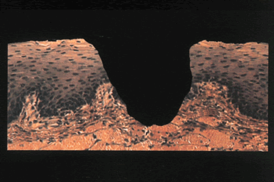 Perte de substance profonde, intéressant toute la hauteur de l’épithélium et s’étendant au chorion ou même au-delà. Peut également être secondaire à une bulle.