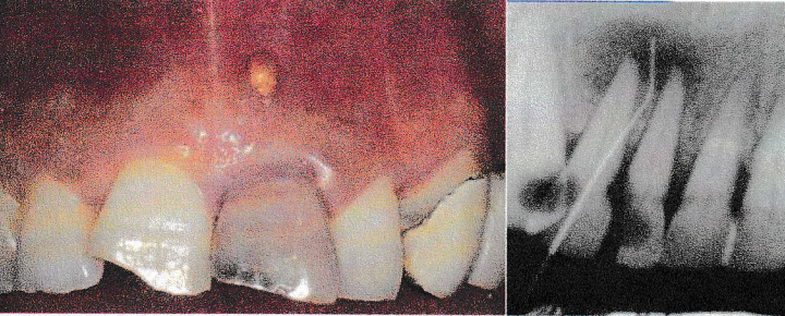 Le trajet et l’émergence de la fistule sont aléatoires ; c’est la raison pour laquelle l’origine de la lésion doit être localisée à l’aide d’une radiographie prise après introduction d’un cône de gutta-percha dans la fistule.