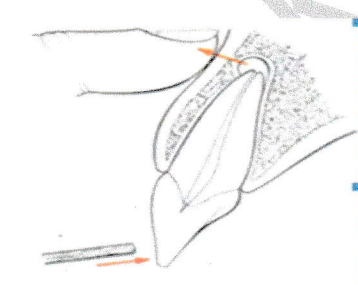 • La percussion transversale peut être perçue, par la pulpe de l’index placé dans le vestibule, au niveau de l’apex de la dent, comme un choc en retour.