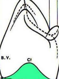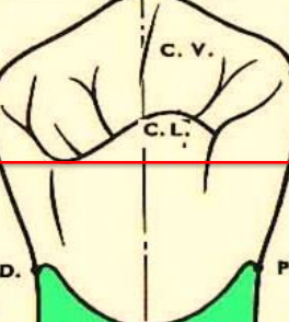 - Une cuspide linguale d’un diamètre vestibulo-lingual plus petit que celui de sa cuspide vestibulaire.