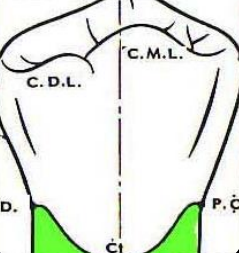 - Il existe deux fossettes marginales (une mésiale et une distale).