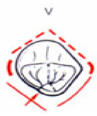 - Le contour vestibulaire est en forme de V à pointe convexe.