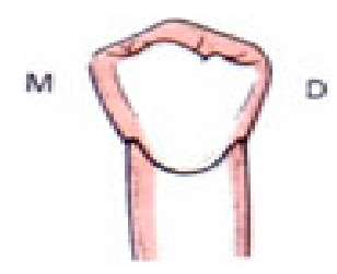 - La surface radiculaire est dans son ensemble à peine convexe ou plate.