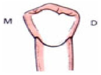 - La crête marginale distale est plus proéminente que la crête marginale mésiale.