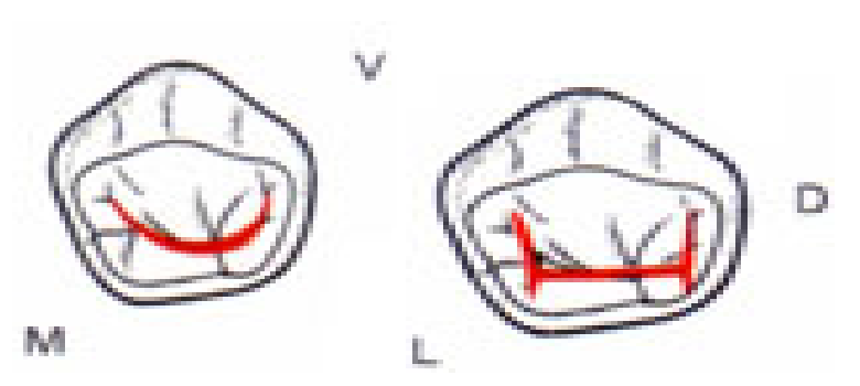 - Un sillon mésial, central et presque rectiligne à orientation mésiodistale.