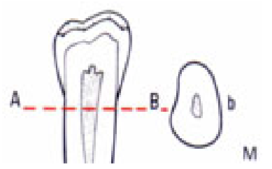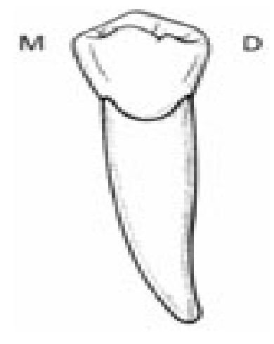 - À l’observation par la face mésiale, la racine est identique à la racine de la 1ère prémolaire.