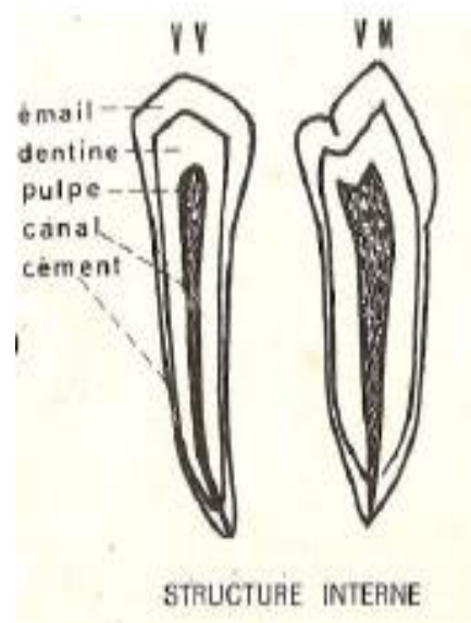 - La chambre pulpaire présente deux cornes :