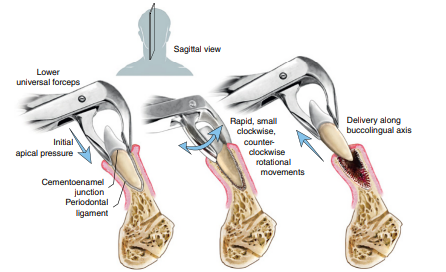 Après la subluxation, l’utilisation du davier permet d’achever la luxation extra-alvéolaire de la dent.