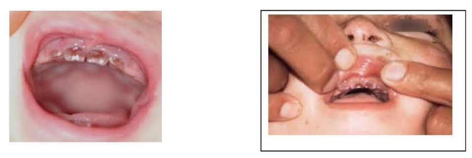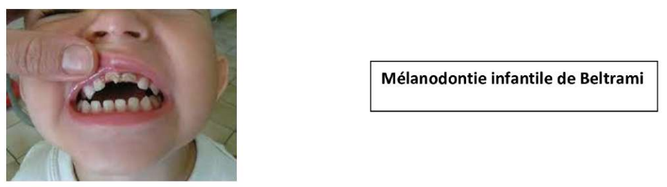 Il se fait avec le syndrome du biberon (étant donné sa localisation aux incisives maxillaires correspondant à la succion de la tétine). Ainsi, à l’âge de 6 ans, il ne reste des incisives que des moignons, parfois même une simple « lamelle » noire, qui se détache de la gencive sans laisser d’orifice.