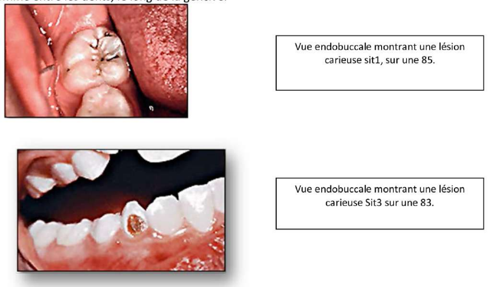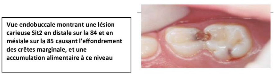 Vue endobuccale montrant une lésion carieuse Sit1, sur une 85.