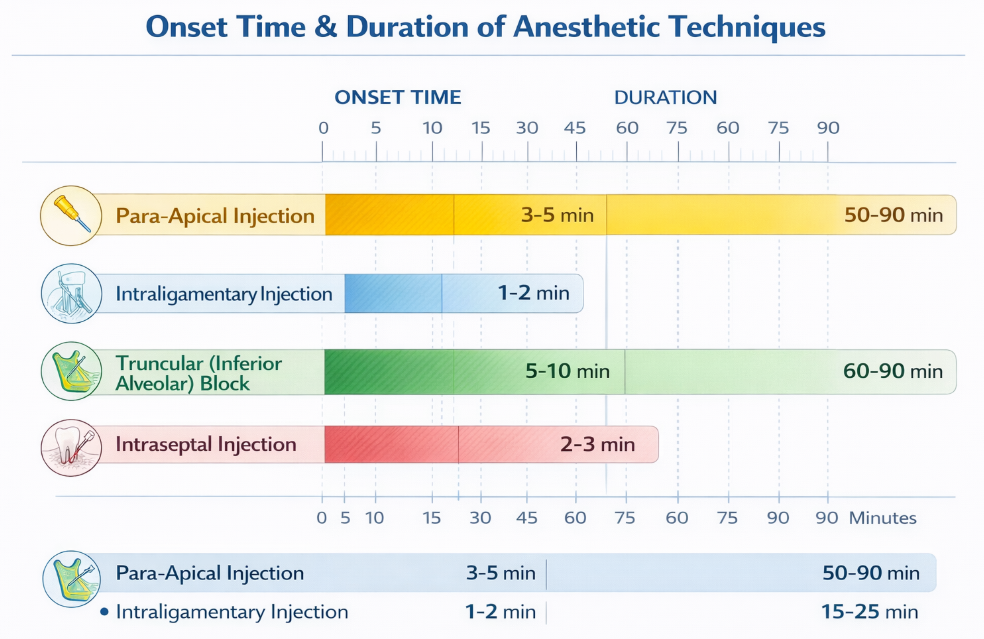 Résultat : Analgésie de toute l’hémiarcade dentaire en 1-2 minutes. Le nerf lingual est souvent bloqué simultanément.