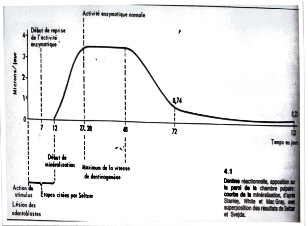 SELTZER en 1959 a mis en évidence diverses étapes de l’élaboration de la dentine réparatrice.