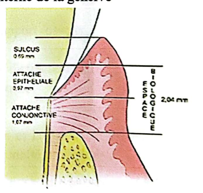 4. L’espace biologique : Espace de 2mm entre le fond du sulcus et le sommet de la crête osseuse alvéolaire. Zone interdite à la limite prothétique.