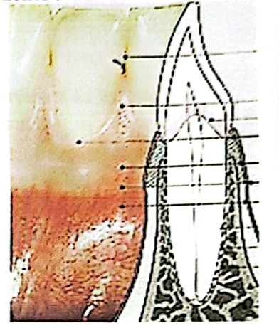 - Gencive papillaire : logée dans l’embrasure, en dessous du point de contact